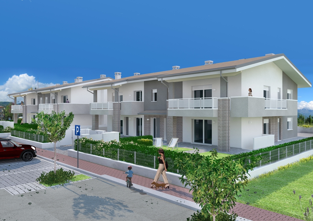 Due edifici plurifamiliari composti ognuno da quattro unità con ingressi indipendenti, ampi giardini e terrazze e finiture curate